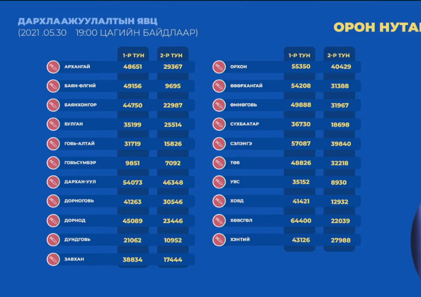 -Сүүлийн 24 цагийн хугацаанд 52 148 хүн дархлаажуулалтад хамрагджээ. Ингэснээр улсын хэмжээнд нийт нэгдүгээр тунд 1 854 643 хүн, хоёрдугаар тунд 1 229 228 хүн хамрагджээ.