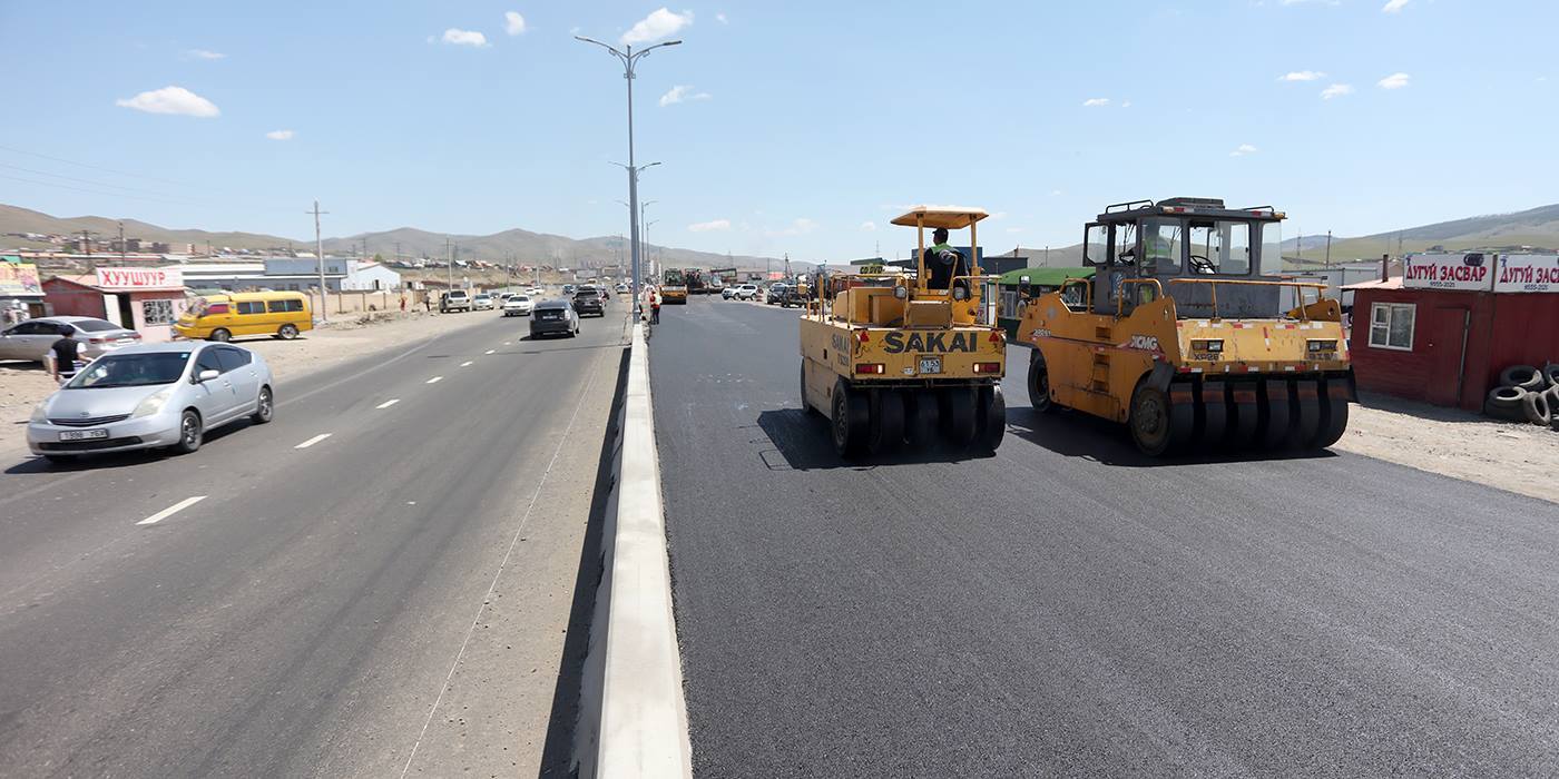 Нийслэлийн Авто замын хөгжлийн газрын орлогч дарга Г.Баттогтох “2020 онд нэг чиглэлийн замынхаа өнгө хучилтыг хийсэн юм. Өнгөрсөн жил есдүгээр сарын 15-наас нэг сар хагас ажиллаж, цар тахалтай холбоотойгоор ажил хийгдээгүй. Харин энэ жилийн ажил өнгөрсөн тавдугаар сарын 20-нд эхэлсэн. Өдгөө өнгө хучилтын ажил үргэлжилж байна. Дөрвөн эгнээ бүхий 20.9 км замын ажлын хүрээнд туслах 3.7 км зам, 38 цэгт ус зайлуулах хоолой, 21 метр урт гүүр, мал, амьтанд зориулсан болон машин гарах тус бүр нэг нүхэн гарц хийхээс өнгө хучилтын ажил үлдсэн. Зургадугаар сарын 30-нд өнгө хучилтын ажлыг дуусгахаар төлөвлөж байна. Үлдэгдэл ажлыг долдугаар сард багтаан хийж дуусгана” гэв.