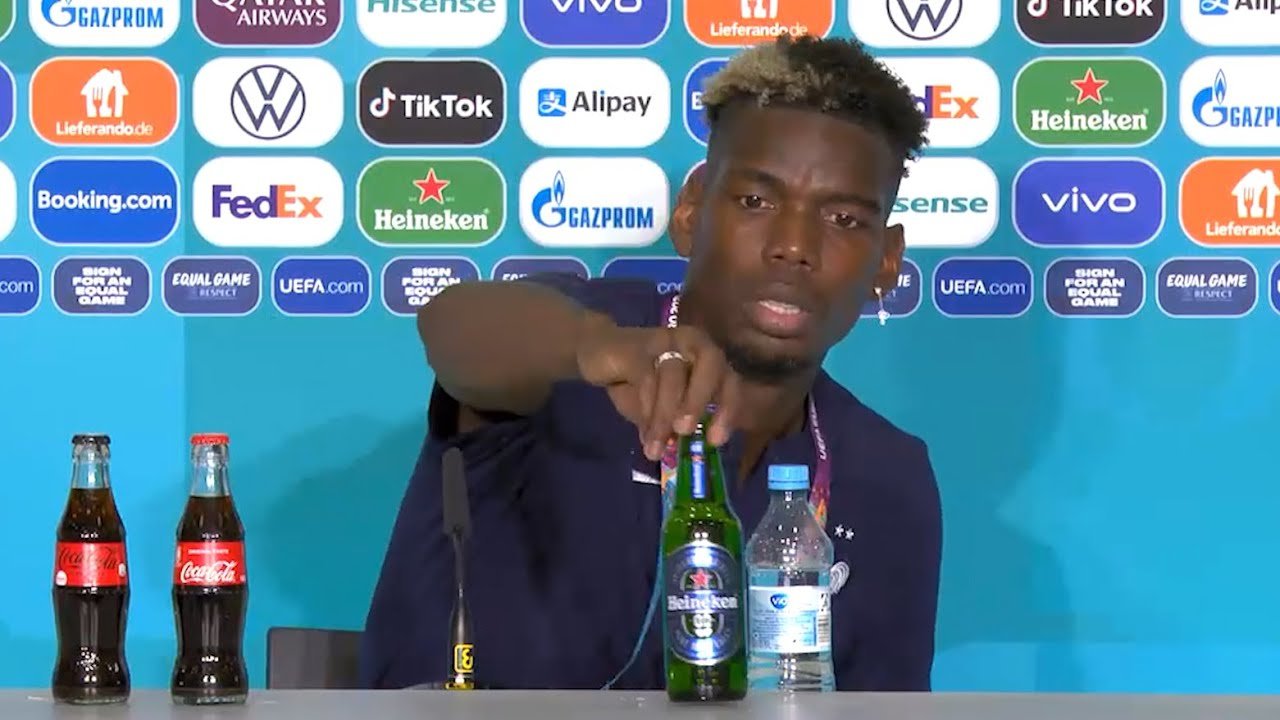 Евро-2020 тэмцээний хэвлэлийн бага хурлын үеэр Криштиану Роналду кока-кола ундаанаас татгалзаж байсантай ижил явдал өнөөдөр боллоо. Тодруулбал, Францын хөлбөмбөгчин Поль Погба хэвлэл мэдээллийн төв дэх ширээн дээрээс Heineken шар айргийг холдуулжээ.