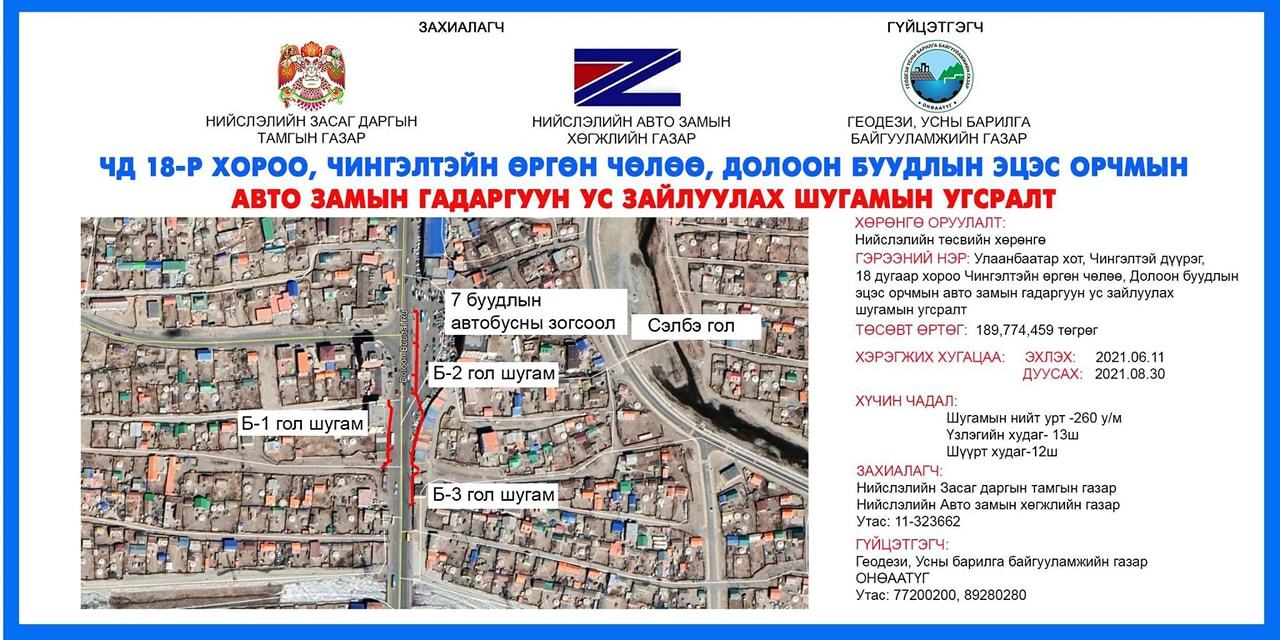 Уг байршилд нийт 262 м газарт борооны ус зайлуулах шугам хоолой угсрахаар төлөвлөжээ.