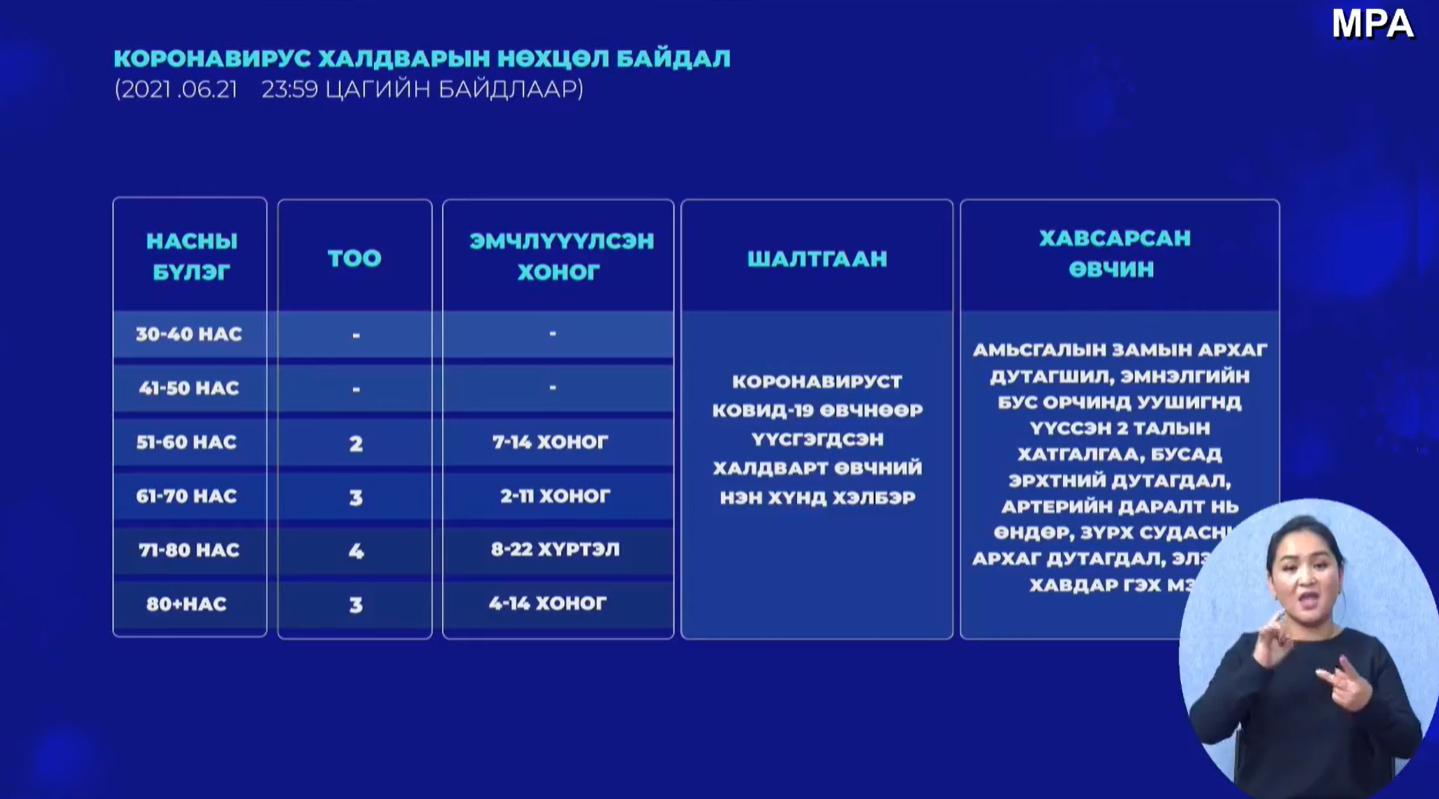 Эрүүл мэндийн яамнаас covid-19 халдварын цаг үеийн нөхцөл байдлын тухай ээлжит мэдээллийг /2021.06.22/ хийлээ.