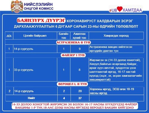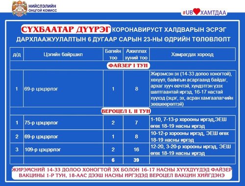 Өнөөдөр өдөр Улаанбаатар хотод 8 явуулын, 20 суурин цэгт дархлаажуулалтын 42 багийн 247 эмч, ажилчид 3338 иргэнийг дархлаажуулна.