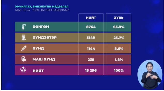 Эрүүл мэндийн яамнаас covid-19 халдварын цаг үеийн нөхцөл байдлын тухай ээлжит мэдээллийг /2021.06.25/ хийлээ.