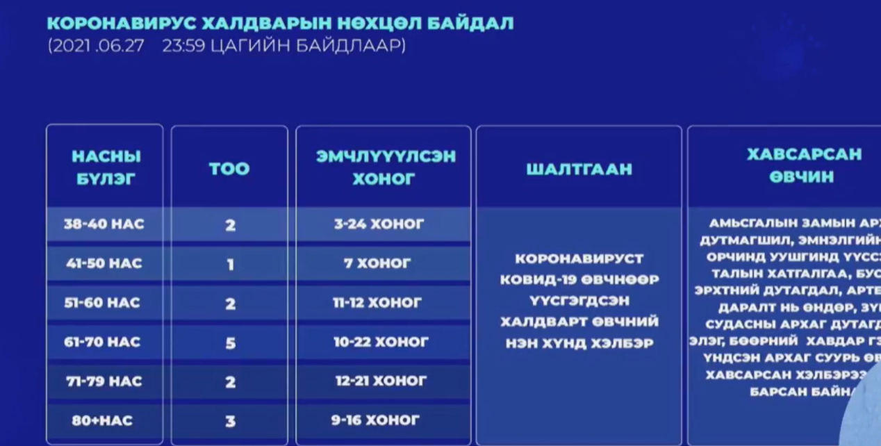Эрүүл мэндийн яамнаас covid-19 халдварын цаг үеийн нөхцөл байдлын тухай ээлжит мэдээллийг /2021.06.28/ хийж байна.