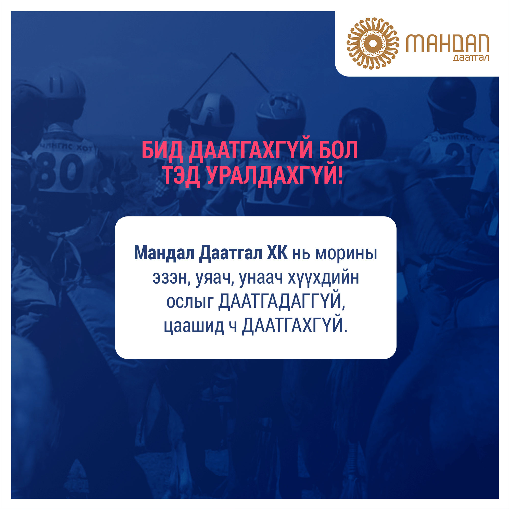 Хувийн даатгалын компаниуд учир хэн ч тэднийг уяач, унаач хүүхдийг бүү даатга гэж захирах, албадах эрхгүй. Тэд өөрсдийн өөрсдийн үүрэг хариуцлагыг ухамсарласан учир ийм шийдвэр гаргажээ. Бахархмаар, талархмаар шүү.