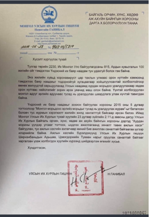 Үндэсний их баяр наадам, нийт монголчуудын наадам бус УИХ-ын гишүүд, төрийн өндөрлөгүүдийн наадам аж. Цар тахлын энэ үед хүүхэд халдвараар өвчлөх, мориноос унах нь тэдэнд огтоос хамаагүй. Харин тэдэнд үндэсний баяр наадмын хурдан морины уралдаанд монгол морьдыг эрлийз адуутай хамт уралдуулах эсэх нь хамаатай гэнэ. Тухайлбал, УИХ-ын гишүүн Н.Ганибал Байгаль орчин, хүнс хөдөө аж ахуйн байнгын хорооны дарга Х.Болорчулуунд өчигдөр албан хүсэлт хүргүүлжээ. Тус хүсэлтэд байнгын хорооны дэргэд хурдан морины үүлдэр угсааг тодорхойлох, шүдлэх ажлын хэсэг байгуулж, ахлагчаар нь өөрөө ажиллахыг хүссэн. Мөн ажлын хэсэгт АН-ын бүлгийн гишүүн Ш.Адьшаа, Ц.Туваан нарыг оруулах саналаа илэрхийлсэн гэнэ. Эмгэнэл. Үнэндээ өнөө цагт энгийн уяачид өөрийн морийг уяж уралдуулах бус хэн нэгэн даргын морийг уяж уралдуулдаг ёс тогтжээ. Нэр, цол нь томчуудад хэрэгтэй. Ямар сайндаа л УИХ-ын гишүүд морьдыг шүдлэх ажлыг өөрсдөө хийх гэнэ. Түмний наадмыг өнгөтэй, мөнгөтэй томчуудын наадам болгож, хүүхэд бус мориндоо санаа зовж суугаа төрийн түшээд. Тэдэнд хүүхдийн эрүүл мэнд бус цол гуншин хэрэгтэй гэнэ.