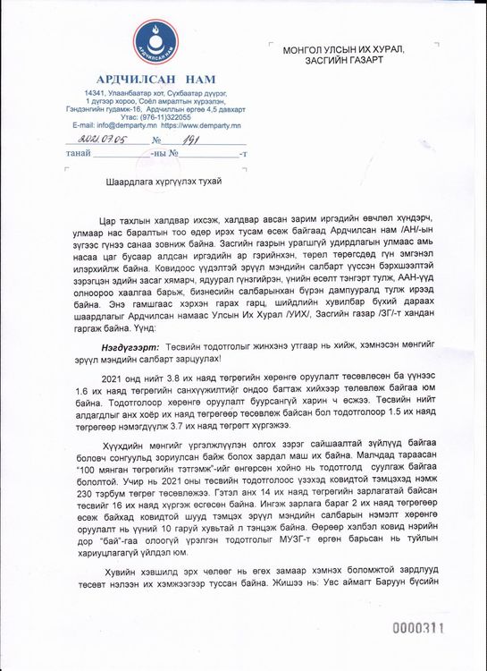 Цар тахлын халдвар өдрөөс өдөрт нэмэгдэж, нас баралт өсч, иргэн тусламж авч чадахгүй эмнэлгийн гадаа нас барсан харамсалтай явдал гарсан. Энэ үед Засгийн газрыг хариуцлагагүй ажиллаж байна гэж УИХ дахь АН-ын бүлэг өнөөдөр Засгийн газрыг огцруулах гарын үсэг цуглуулж эхэлснээ мэдэгдсэн билээ.
