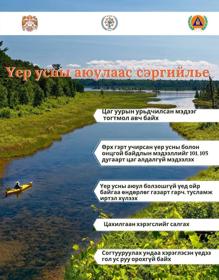 Өрх гэрт учирсан үер усны болон онцгой байдлын мэдээллийг 101, 105 дугаарт цаг алдалгүй мэдээлэх