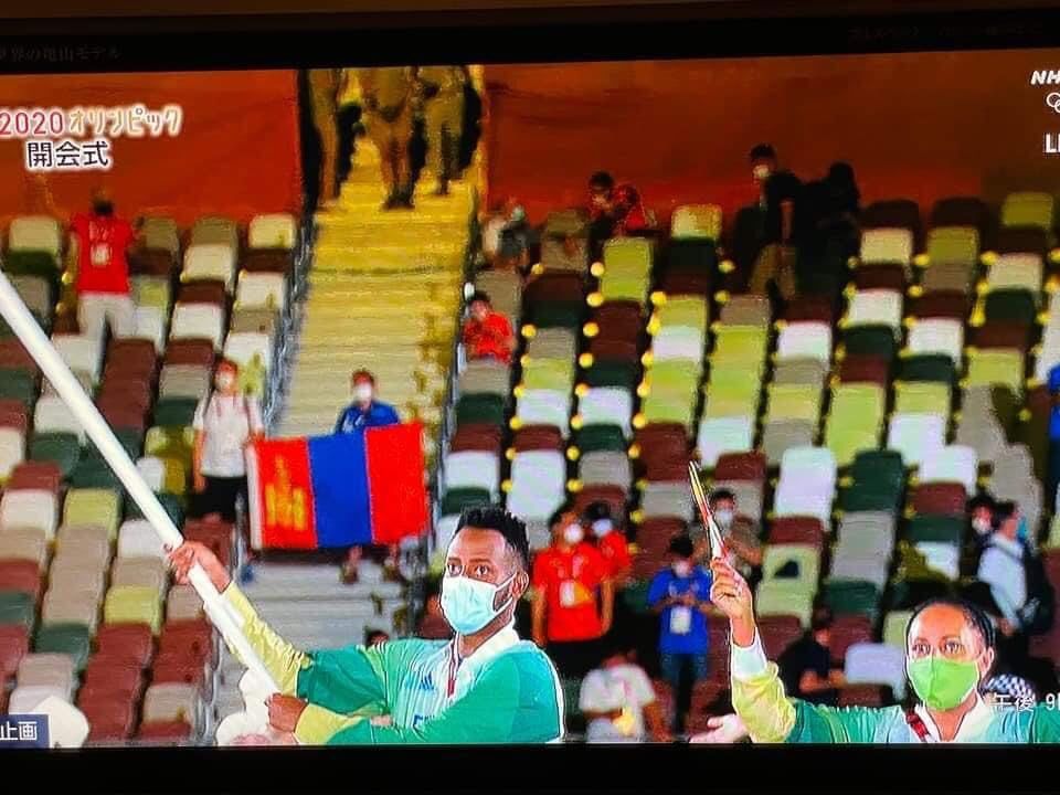 Олимпын наадмын нээлтийг үзэн суусан хүн бүр Монголын далбааг хоёр хүн барин зогсож байгааг харсан нь лавтай. Олон орны тамирчид жагсан алхах үеэр хоосон цэнгэлдэхэд улсынхаа далбааг барин зогсож байсан тэднээр хүн бүр бахархсан нь мэдээж.