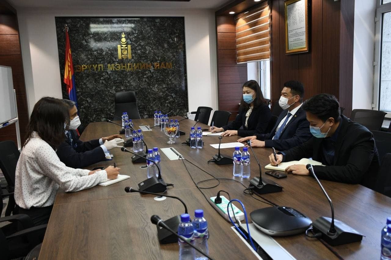 Эрүүл мэндийн сайд С.Энхболд НҮБ-ын Монгол Улс дахь Суурин зохицуулагч Тапан Мишраг өчигдөр хүлээн авч уулзлаа. Энэ удаагийн уулзалтаар КОВИД-19 өвчлөлийн нөхцөл байдал, цаашид авч хэрэгжүүлэх бодлого шийдвэрийн талаар санал солилцсон юм. Эрүүл мэндийн яамнаас КОВИД-19-ийн эсрэг вакцинжуулалтын ажлыг үр дүнтэй зохион байгуулж нийт хүн амынхаа 60,1 хувийг вакцинжуулсан нь маш өндөр амжилт гэдгийг НҮБ-ын Монгол Улс дахь Суурин зохицуулагч Тапан Мишра онцлов.