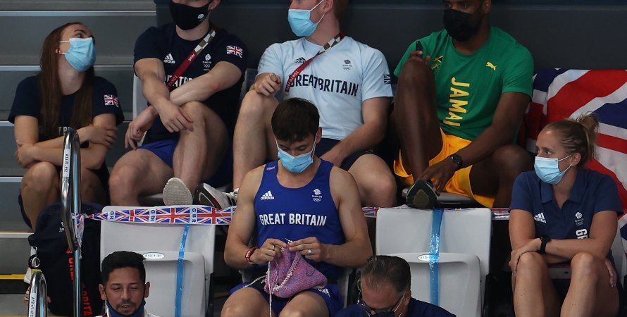 Британийн усанд үсрэлтийн аварга Том Дейли Токиогоос авсан алтан медальдаа зориулж Британийн далбаа бүхий хээтэй уут нэхжээ. Гэхдээ тэр өөр байдлаар олон нийтийн сүлжээнд алдаршсан юм. Том Дейли эмэгтэйчүүдийн усанд үсрэлтийн тэмцээний үеэр нэхмэл хийж байгаа нь олны анхаарлыг ихээхэн татсан.
