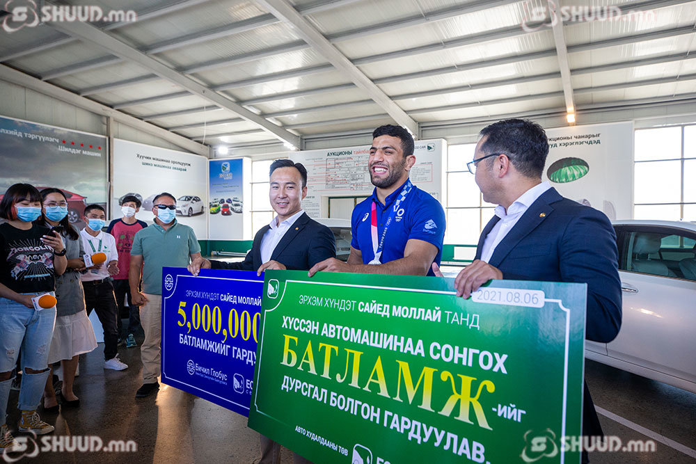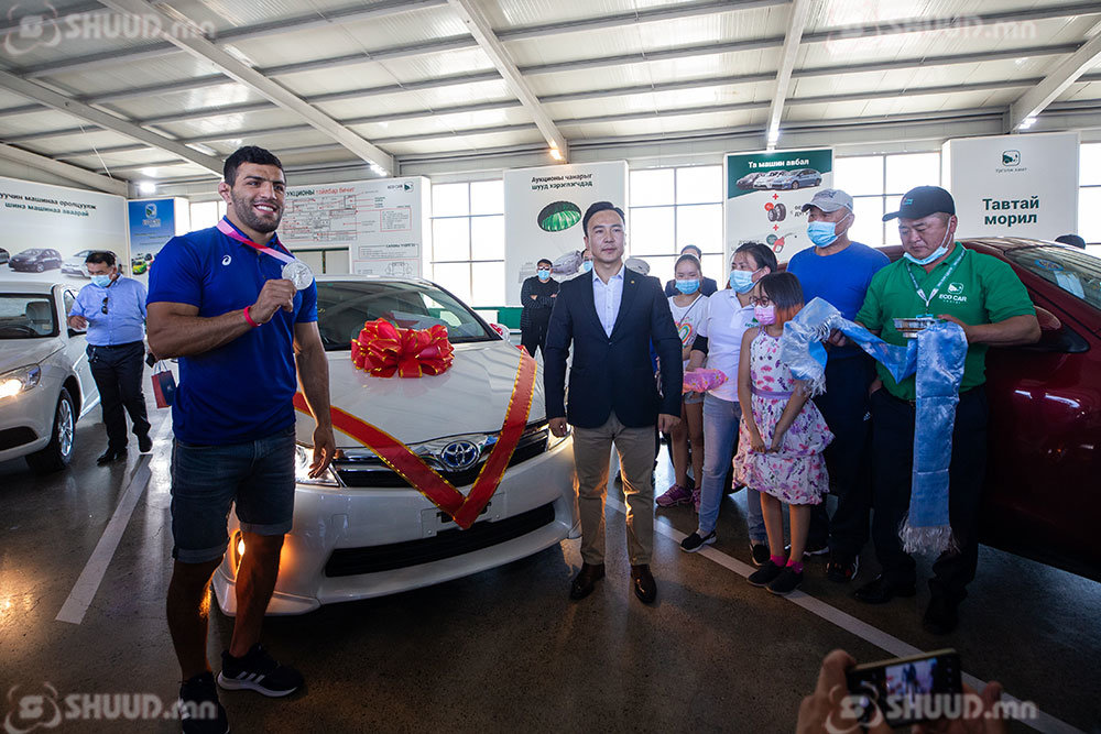 "Токио 2020" олимпын наадмын жүдо бөхийн 81 кг-ын жинд мөнгөн медальт Монгол Улсын тамирчин Сайед Моллайд "Eco car" компанийн хамт олон шинэ машин бэлэглэж, өнөөдөр түлхүүрийг нь гардуулан өглөө. Тэрбээр цагаан өнгийн Toyota Sai маркийн автомашин сонгон авлаа. Тус компани автомашины гурван жилийн сервис үйлчилгээг дааж хийх юм байна.