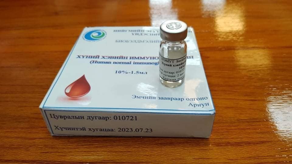 Иммуноглобулин хэмээх уургийн бэлдмэлийг ковидын халдварын хүндэвтэр шатны эрт үеийн эмчилгээнд хэрэглэх нь халдварын эдгэрэлтийг хурдасган, хүндрэлээс сэргийлдэг болохыг олон орны судалгаа харуулж байгаа бөгөөд ДЭМБ-аас коронавирүсийн халдварын үед хэрэглэж болно гэж эмчилгээний удирдамждаа заасан байна. Манай улсад хэвийн болон өвөрмөц иммуноглобулиныг урьд нь халдварт шар, улаан бурхан, менингит зэрэг халдварт өвчний урьдчилан сэргийлэлт, эмчилгээнд хэрэглэж байсан арвин туршлагатай.