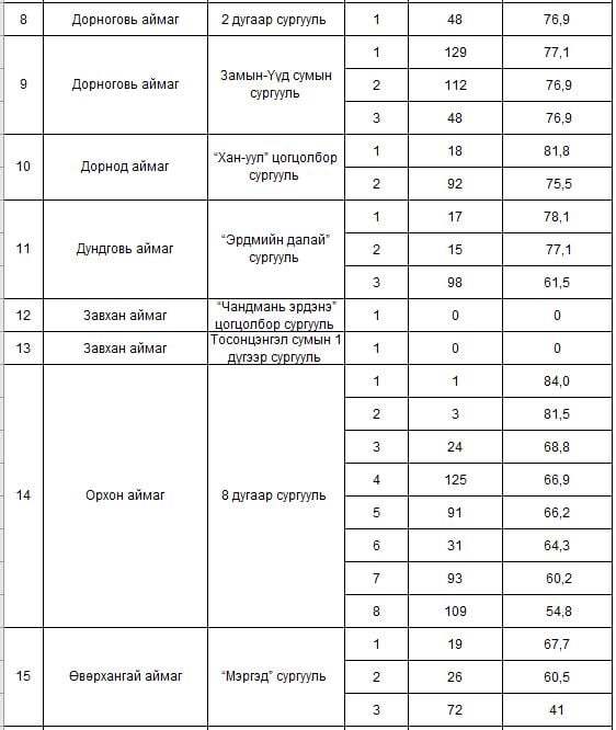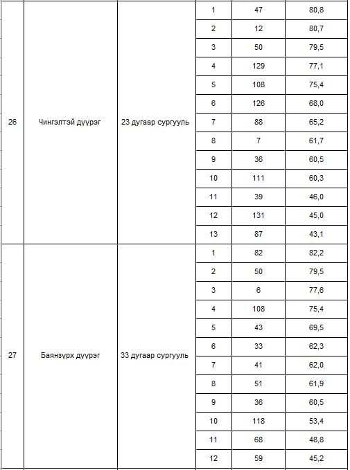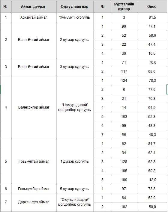 Сонгон шалгаруулалтын нэгдсэн дүн: