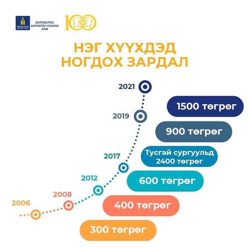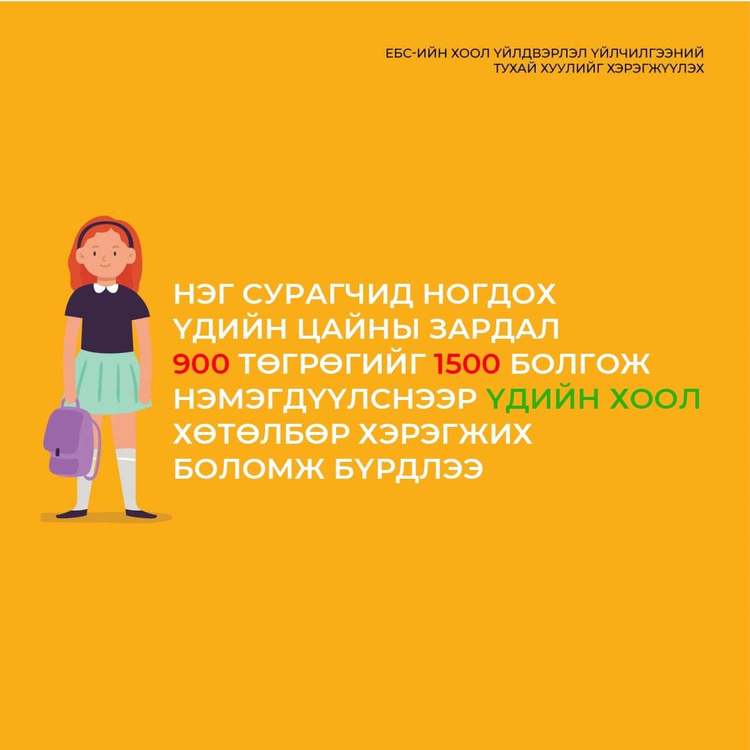 Үдийн цай хөтөлбөрийг Үдийн хоол болгож нэг хүүхдэд ногдох зардал 900 төгрөг байсныг 1500 болгож нэмэгдүүлэв.