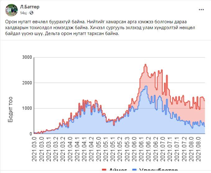 Тэгвэл ХӨСҮТ-ийн ерөнхий захирал Л.Баттөр өөрийн цахим хуудаснаа орон нутагт коронавирус халдварын "Дельта" хувилбар тархсан талаар бичжээ.