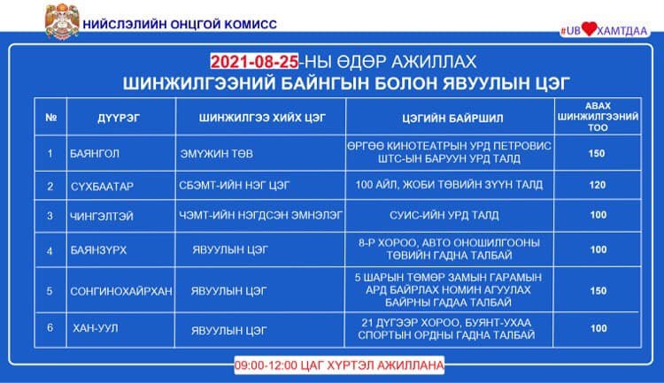 Өнөөдөр ажиллах шинжилгээний цэгүүдийн байршлыг танилцуулж байна.