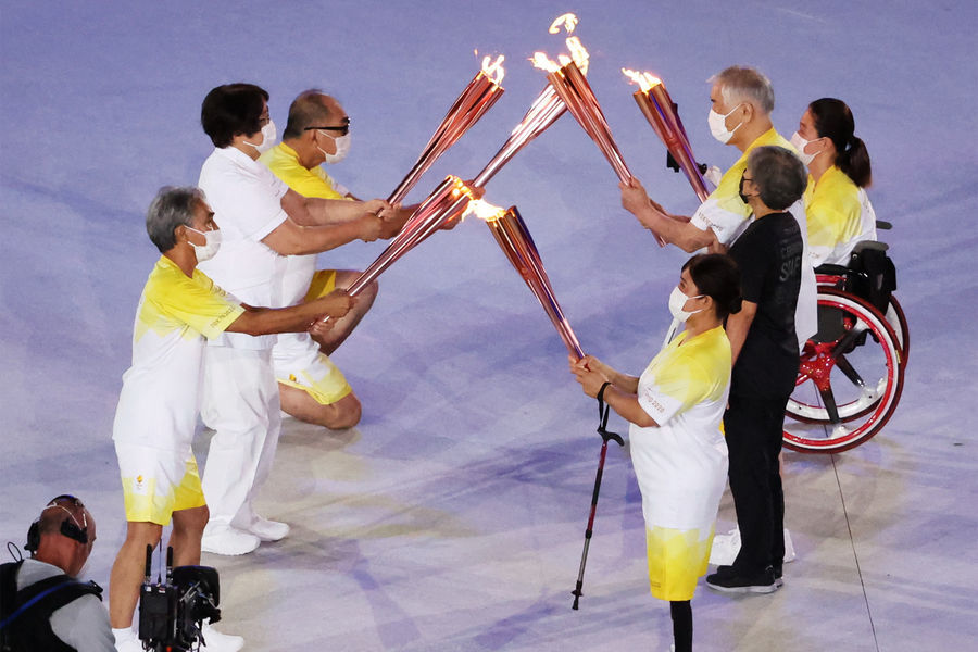 Нээлтийн ёслол болохоос хэдэн цагийн өмнө Токио хотод Олимпын бамбарын буухиа өндөрлөсөн юм. Коронавирусийн халдварын тохиолдол эрс нэмэгдсэн тул Токиогийн гудамжаар бамбарыг буухиалаагүй аж.