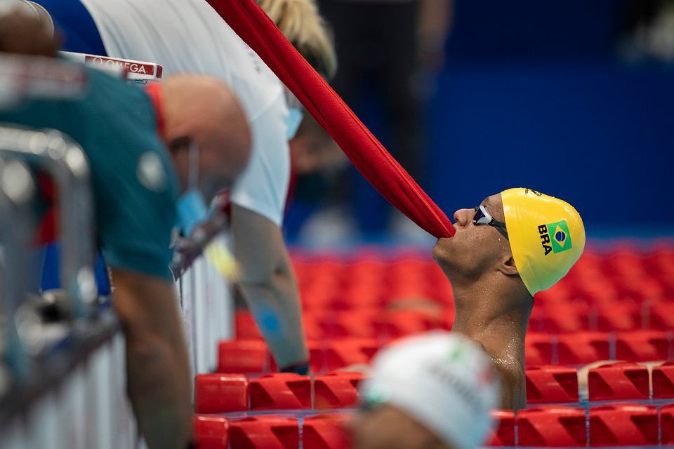Олныг бишрүүлсэн өөр нэг тамирчин нь Бразилийн усанд сэлэгч Габриэль дос Сантос. Мөн л хоёр гаргүй тэрбээр усан сангийн хэсгээс түлхэж холдохын тулд алчуур зуусан зураг олны анхааралд өртсөн юм. Тэрбээр эрэгтэйчүүдийн 100 метрийн төрөлд мөнгөн медаль хүртжээ.