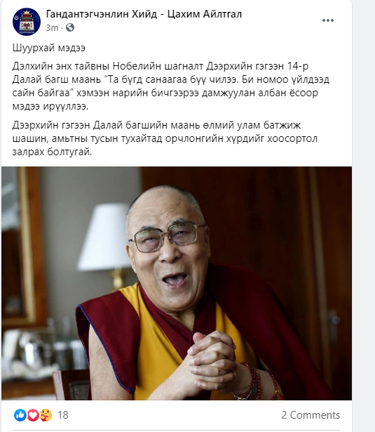 Тэгвэл уг мэдээллийн талаар Гандантэгчэнлийн хийдийн албан ёсны цахим хуудаснаа тайлбар нийтэлжээ.