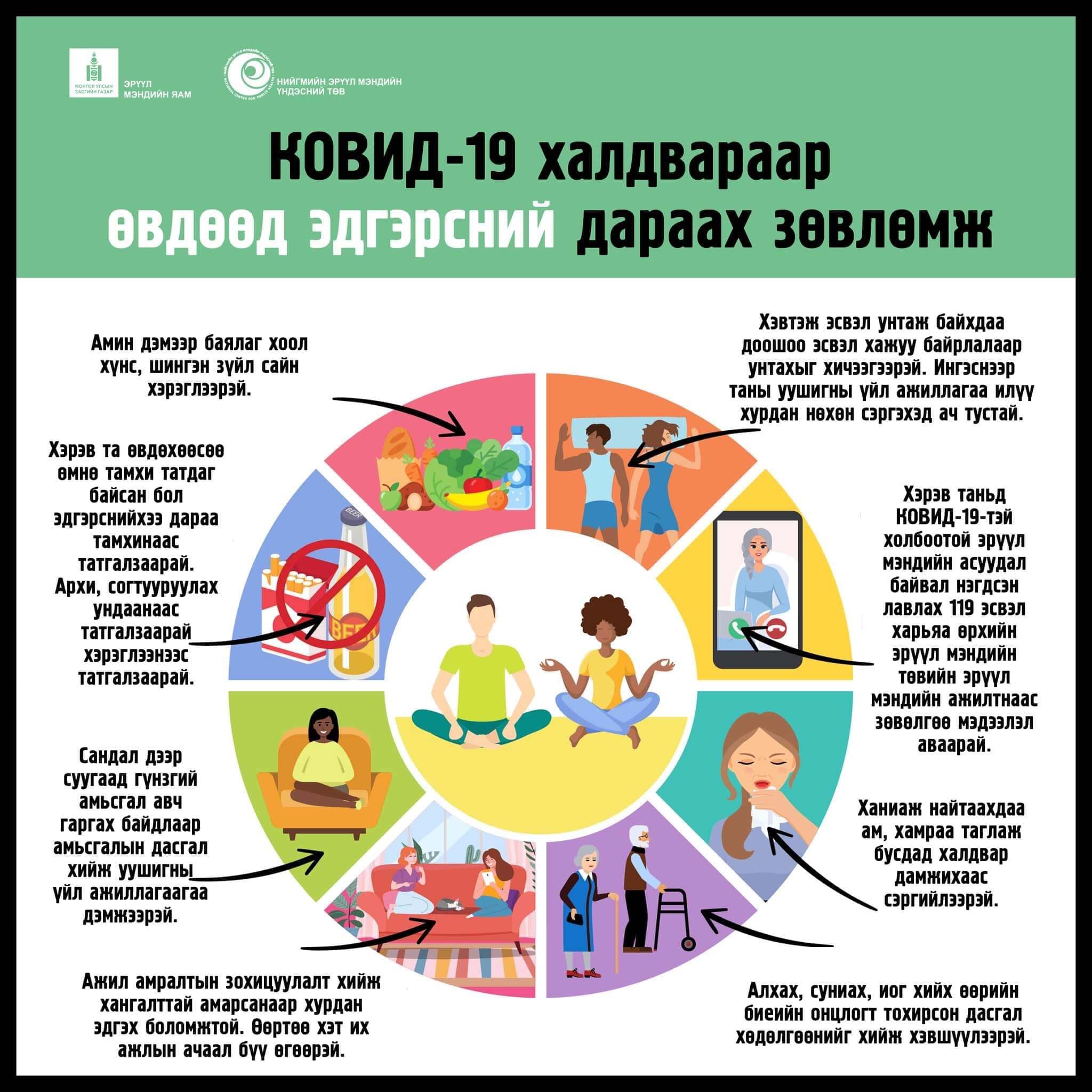 Эрүүл мэндийн салбарынхан халдвар авахгүй байх, нэгэнт халдвар авсан бол эмчлэхэд илүү анхаарал хандуулж буй. Харин халдвар аваад эдгэсний дараах эмчилгээ сувилгааг орхигдуулсан. Эдгэсний дараа ямар эмчилгээ сувилгаа хийх талаар дорвитой зөвлөгөө зөвлөмж байхгүй. Сайн ид, сайн унт, агаарт алх гэснээс өөрцгүй. Тиймээс ч олон олон хүн халдварын дараах үеийг хэрхэн даван туулахаа мэдэхгүй, ядарсан сульдсан, өвдсөн биетэйгээр ажил, амьдралаа залгуулж яваа.