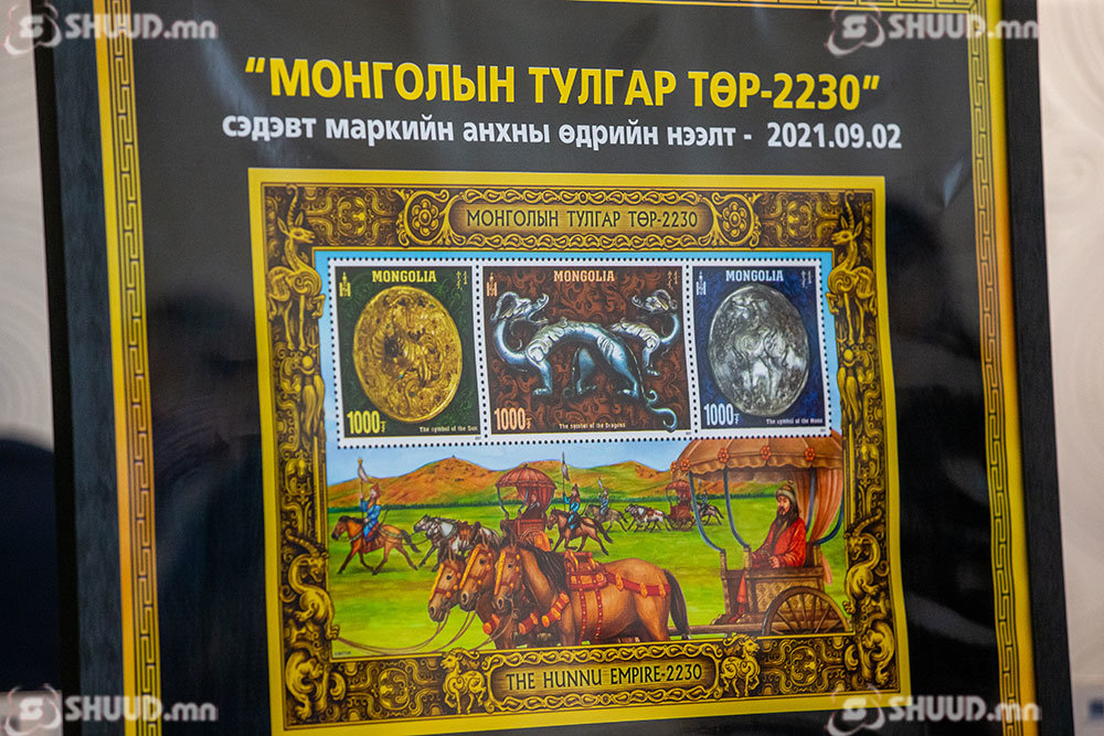 “Монголын тулгар төр - 2230” сэдэвт хэлхээ марканд Архангай аймгийн Өндөр-Улаан сумын Балгасын талын Гол мод-2 гэдэг газар малтан шинжилсэн Хүн улсын 1-р язгууртны булшнаас олдсон хосгүй үнэт археологийн олдворуудыг оруулжээ.