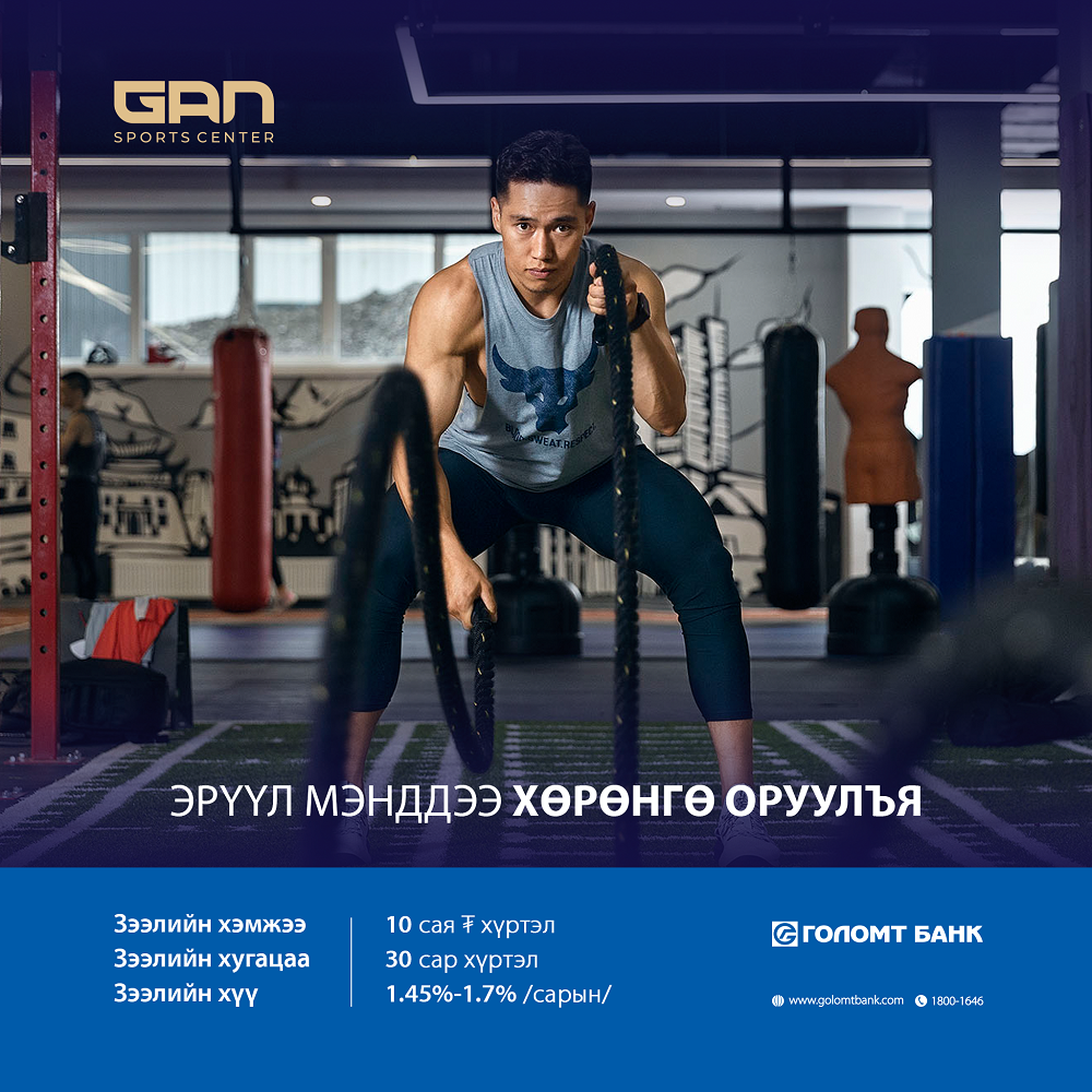 Харин Голомт банк “Ган спорт төв”-тэй хамтран эрүүл амьдралын хэв маягийг нийтэд уриалж, “Фитнесс зээл”-ийг санаачлан хэрэгжүүлж эхэллээ. Та “Фитнесс зээл”-д хамрагдсанаар “Ган спорт төв”-ийн фитнесс, crossfit, усан спорт, бокс болон балет, иог гэх мэт спортын төрлүүдээс сонгон хичээллэх боломжтой юм.