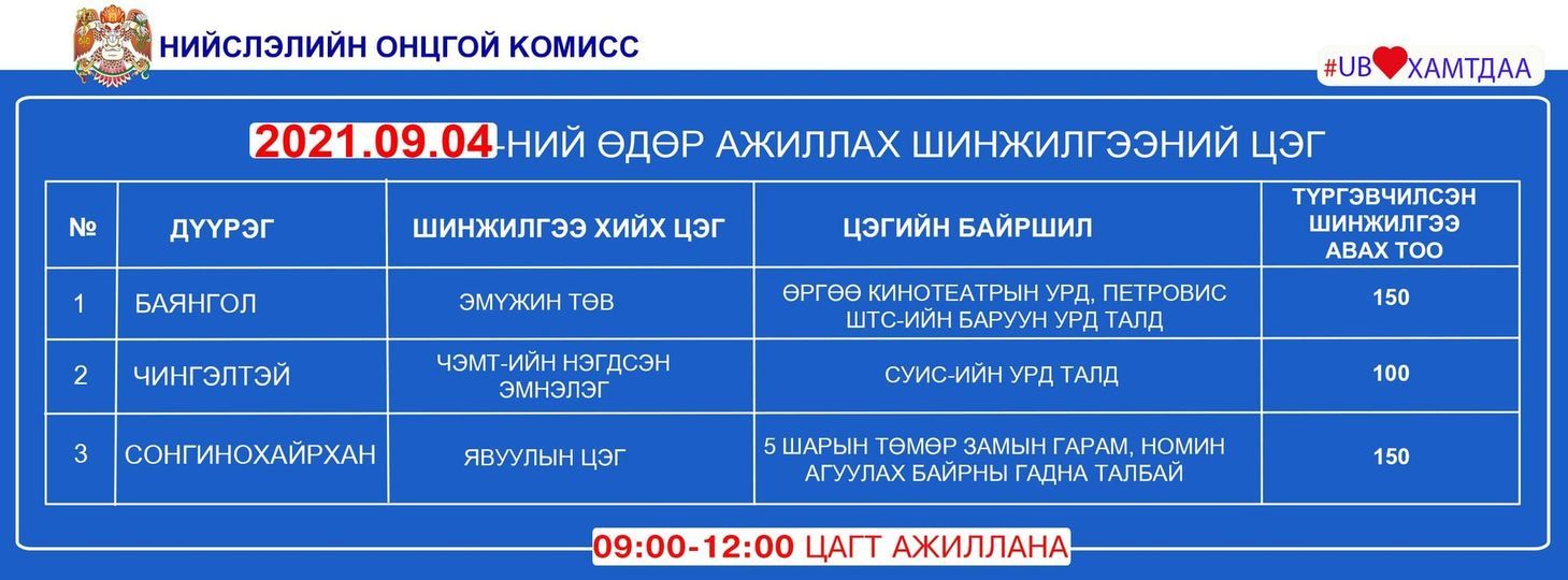 Өнөөдөр ажиллах шинжилгээний цэг