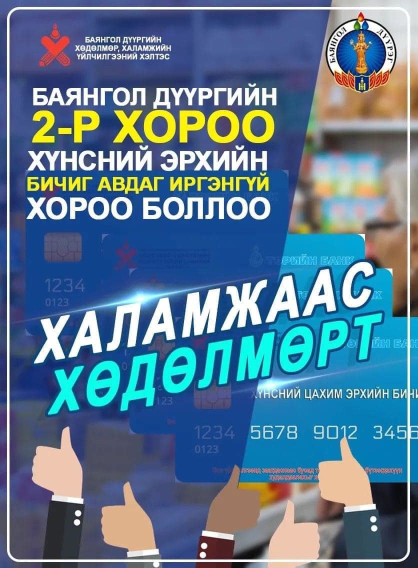 Өнгөрсөн наймдугаар сард Хэнтий аймгийн Баян-Овоо сум хүнсний талонгүй анхны сум боллоо гэж зарлав. Харин өчигдөр Баянгол дүүргийн хоёрдугаар хороо хүнсний талонгүй хороо болсноо мэдэгдэв. Энэ сум, хороод хүнсний талон авдаг байсан иргэдээ ажилд зуучилсан гэсэн үг. Төрөөс өгөх халамжийн хэдэн төгрөгийг царайчилж суух бус өөрийн хүч хөдөлмөрөөр илүү их орлого олох хүсэл сонирхолтой иргэдийг төр дэмжсэн нь энэ.