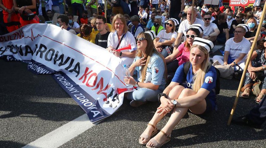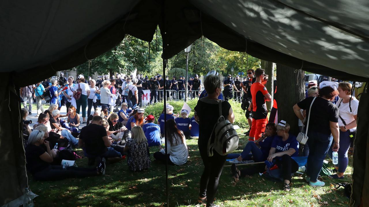 Польш: Эмч нар эсэргүүцэл илэрхийлж, Засгийн газрын ордны өмнө майхан босгожээ