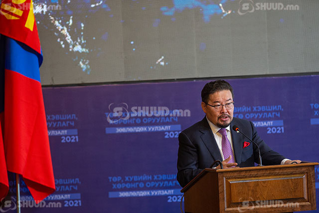 Цар тахлын үеийн эдийн засгийг сэргээх, цар тахлын дараа эдийн засгаа богино хугацаанд үсрэнгүй хөгжлийн замд хөтлөн гаргах зорилт бол Монгол төрийн бодлого, Монгол түмний хүсэмжлэл, Та бидний хүсэмжлэл юм. Энэ зорилтоо бид НЭГ МОНГОЛ НЭГ ЗҮГТ харж, нэгдмэл эрмэлзэлтэй байж, цэгцрэх хөдөлгөөнийг эрчимтэй өрнүүлэх замаар хэрэгжүүлж чадна. Бидэнд ийм нөөц, бололцоо бүрэн байна. Эрдэс баялгийн арвин үүцтэй, эрдэмт хүний дундаршгүй нөөцтэй, хувийн хэвшил нь өндөр чадавхитай улс орон бол Монгол. Эрсдэлийг даван туулах, улсаа хөгжүүлэх энэ эрхэм зорилгод хувийн хэвшлийнхэн, хөрөнгө оруулагчид тулгуур багана болно гэдгийг тэмдэглэж хэлэхийг хүсэж байна.