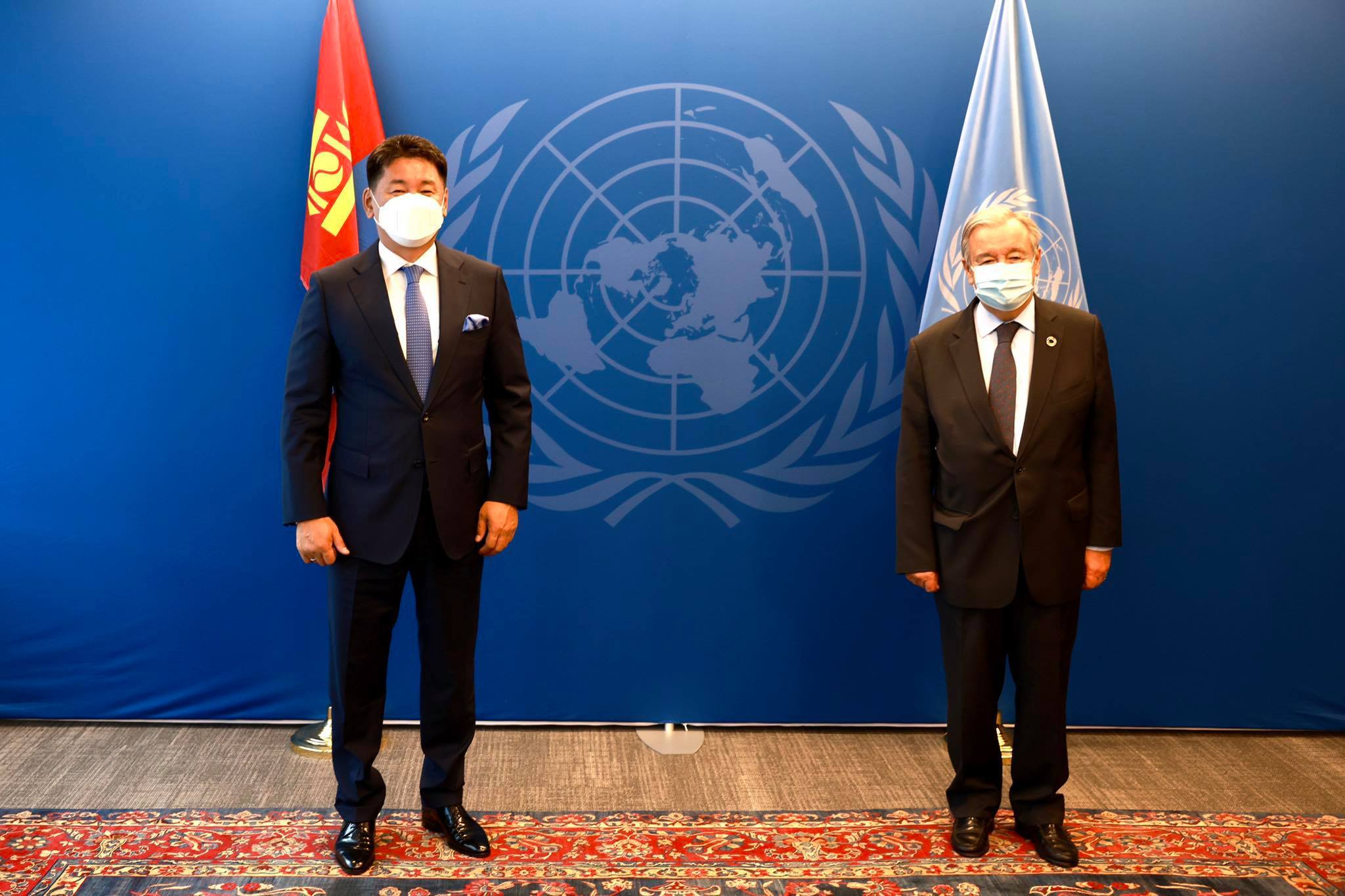 Монгол Улсын Ерөнхийлөгч У.Хүрэлсүх 2021 оны 09 дүгээр сарын 20-ны өдөр НҮБ-ын Ерөнхий нарийн бичгийн дарга Антонио Гутеррештэй уулзав.