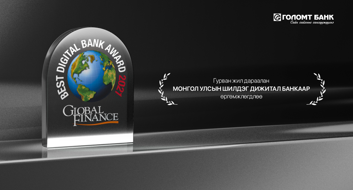 Дэлхийн банк санхүүгийн салбарын шилдгүүдийг тодорхойлогч, олон улсад нэр хүндтэй “Global Finance” сэтгүүлээс 2021 оны дэлхийн шилдэг банкнуудыг тодруулан зарласнаас Голомт банк “Монгол Улсын Шилдэг Дижитал Банк”-аар дахин шалгарлаа. Голомт банкны хувьд тус шагналыг 7 дахь жилдээ хүртэж байгаа төдийгүй сүүлийн гурван жил дараалан ийнхүү шилдгээр өргөмжлөгдөөд байна.