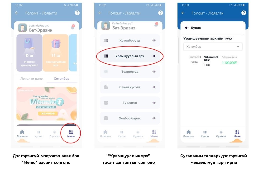Харин Голомт банк таны санхүүгийн дархлааг дэмжих “Витамин ₮” урамшуулалт аяныг зарлаад байгаа билээ. Энэхүү аяны хүрээнд бүх төрлийн төгрөгийн хугацаатай хадгаламж шинээр нээсэн, хадгаламждаа орлого нэмсэн, хугацаа сунгасан мөнгөн дүнгийн 100,000₮ тутамд 1 сугалаа олгож байгаа юм. “Витамин ₮” аяны оролцогчдод зориулан сугалааны эрхээ хэрхэн шалгах талаар зааврыг хүргэж байна.