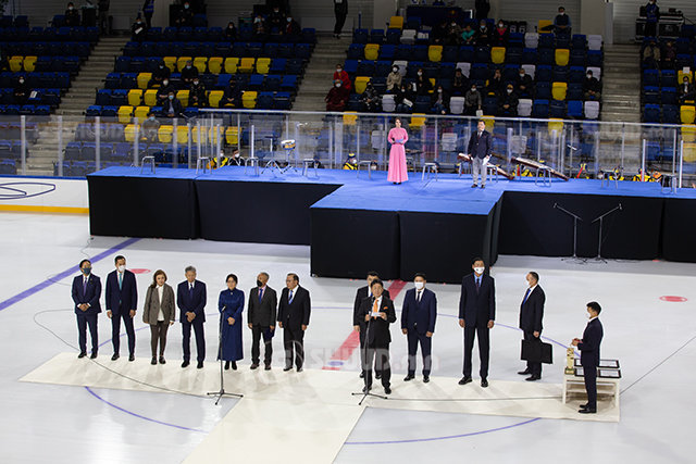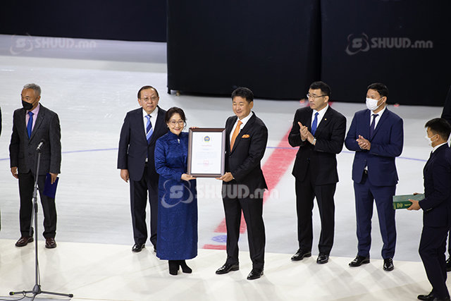 Монгол Улсын Ерөнхийлөгч У.Хүрэлсүх "Дөрвөн жилийн өмнө миний бие Шадар сайдаар ажиллаж байхдаа “Мөсөн өргөө” төсөлтэй анх танилцаж дараа нь Ерөнхий сайд байхдаа тухайн үед ажиллаж байсан Монгол Улсын Ерөнхийлөгч Х.Баттулгатай хамт суурин дээр ирж ажиллаж байсан. “Эвтэй бол хүчтэй” гэж манай ард түмэн ярьдаг. Эвлэлдэн нэгдэж ард түмнийхээ хүсэл мөрөөдлийг биелүүлж мөнхөд байх Мөсөн өргөөг цогцлоон босгожээ. Монгол Улсад анх удаа инженер, шинэ технологи, шийдлийг нутагшуулж, хүнд нөхцөл байдалд бэрхшээл сорилтыг даван туулж их бүтээн байгуулалтыг хийсэн та бүхэндээ талархал дэвшүүлж байна. Монгол Улс Олон улсын Олимпын хорооны стандартад нийцсэн өвлийн спортын битүү ордонтой болж байна. Баг тамирчид маань өвлийн олимпд амжилттай оролцох боломжийг бүрдүүлж, хүүхэд багачууд маань шинэ мөрөөдлөөр жигүүрлэх үүд хаалгыг нээж байна. Гэр бүл, найз нөхөд, анги хамт олноороо эрүүл аюулгүй орчинд чөлөөт цагаа өнгөрөөх нөхцөлийг бий болгосон энэхүү Мөсөн өргөө нь Монголын спорт төдийгүй соёлын салбар, барилгын салбарын онцлог бүтээн байгуулалт болж сүндэрлэн босож чадлаа. Дөрвөн улиралд дураараа гулгах энэ Мөсөн өргөөний дэвжээнээс Монголын анхны Олимпын медальтнууд, Олимпын аварга төрнө гэдэгт огт эргэлзэхгүй байна. Тэр цаг тун удахгүй ирнэ гэдэгт итгэл төгс байна" гэлээ.