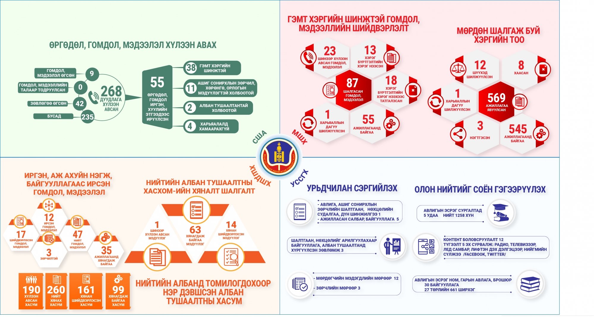 Өнгөрсөн долоо хоногт иргэн, аж ахуйн нэгж, байгууллагаас ирүүлсэн нийтийн албан тушаалтны авлига, ашиг сонирхлын зөрчилтэй холбоотой 47 гомдол, мэдээллийг хүлээн авч шалгаснаас 17 гомдол, мэдээллийг хянан шийдвэрлэлээ.