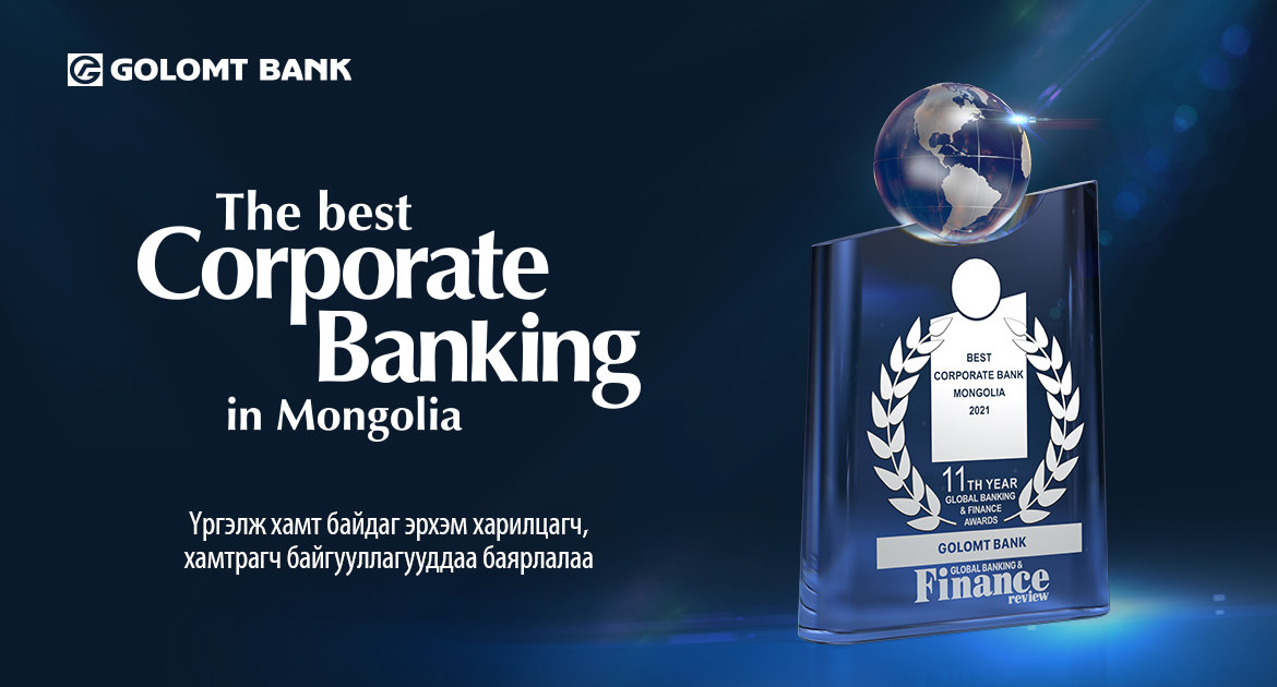 Олон улсын банк санхүүгийн салбарт нэр хүндтэй сэтгүүл болох “Global Banking & Finance Review”-ээс Голомт банкийг “Best Corporate Bank in Mongolia - 2021” буюу Монгол Улсын шилдэг байгууллагын банкаар өргөмжиллөө. Уг шагналыг дэлхийн санхүүгийн нийгэмлэгийн хүрээнд нэвтрүүлсэн шинэ үйлчилгээ, амжилт, стратеги, дэвшилтэт технологи зэрэг олон шалгуурыг үндэслэн олгодог бөгөөд Голомт банк эдгээрийг бүрэн хангажээ.