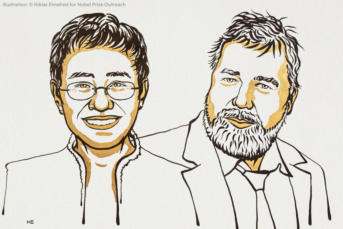Энэ жил Норвегийн Нобелийн хороо Оросын "Шинэ сонин"-ы ерөнхий редактор Дмитрий Муратов болон Филиппиний сэтгүүлч Мария Рессе нарт "ардчилал, бат бэх энх тайвны суурь болсон үг хэлэх эрх чөлөөг хамгаалахад оруулсан хүчин чармайлт"-ынх нь төлөө Нобелийн энх тайвны шагнал гардуулжээ.