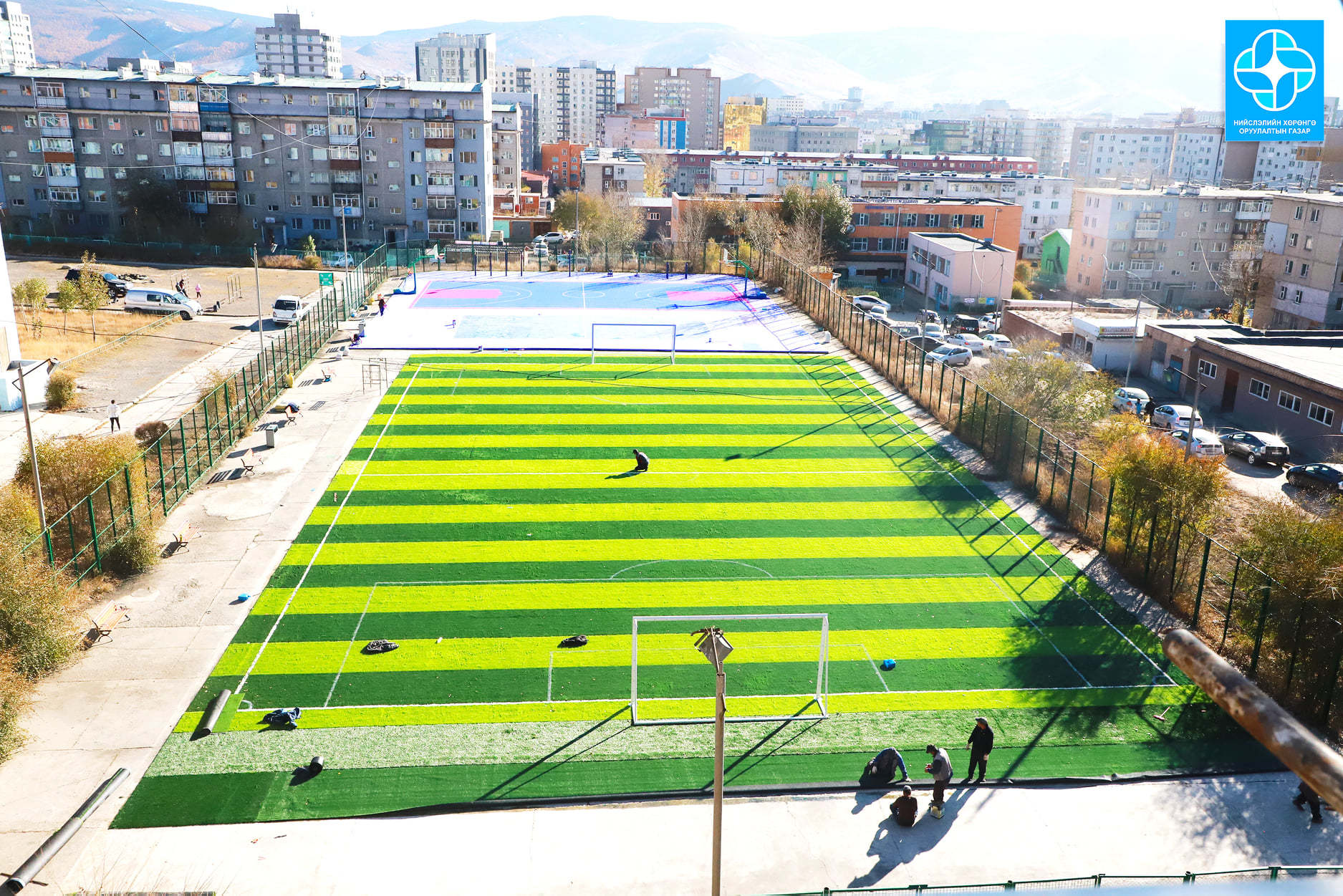 Баянзүрх дүүргийн 97 дугаар сургуулийн спорт талбайг тохижуулж байна