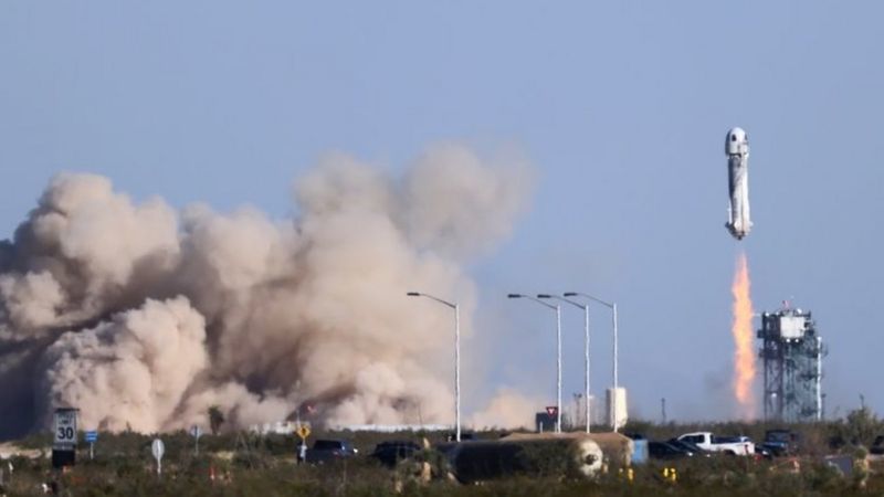 New Shepard хөлөг хоёр дахь удаагаа сансарт хөөрсөн нь энэ бөгөөд эхний нислэг долдугаар сарын 20-нд болж, Безос, түүний дүү, Нидерландын оюутан болон 82 настай нисэгч Уолли Фанк нарыг сансарт хүргэж байв.