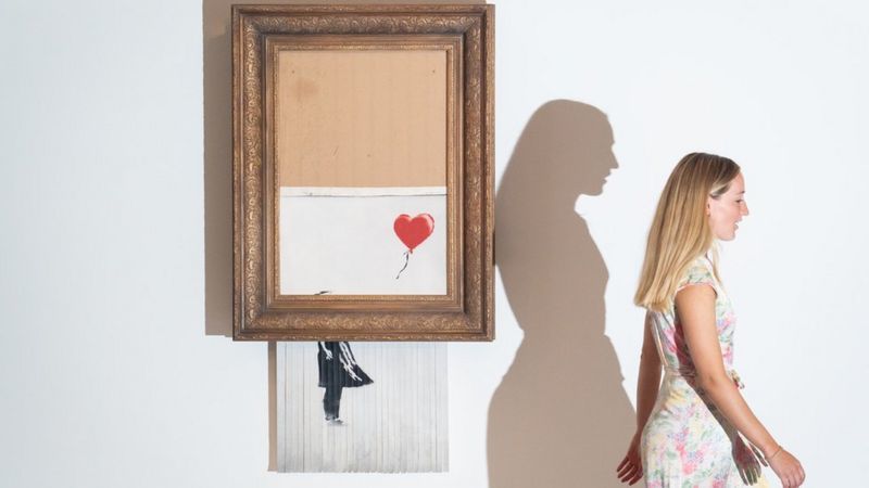 2018 оны 10 дугаар сард Бэнксигийн "Бөмбөлөг барьсан охин" бүтээл дуудлага худалдаагаар орж, өндөр үнээр зарагдсаны дараа дуудлага худалдаанд оролцогчдын нүдэн дээр зураг устгагдаж байв.
