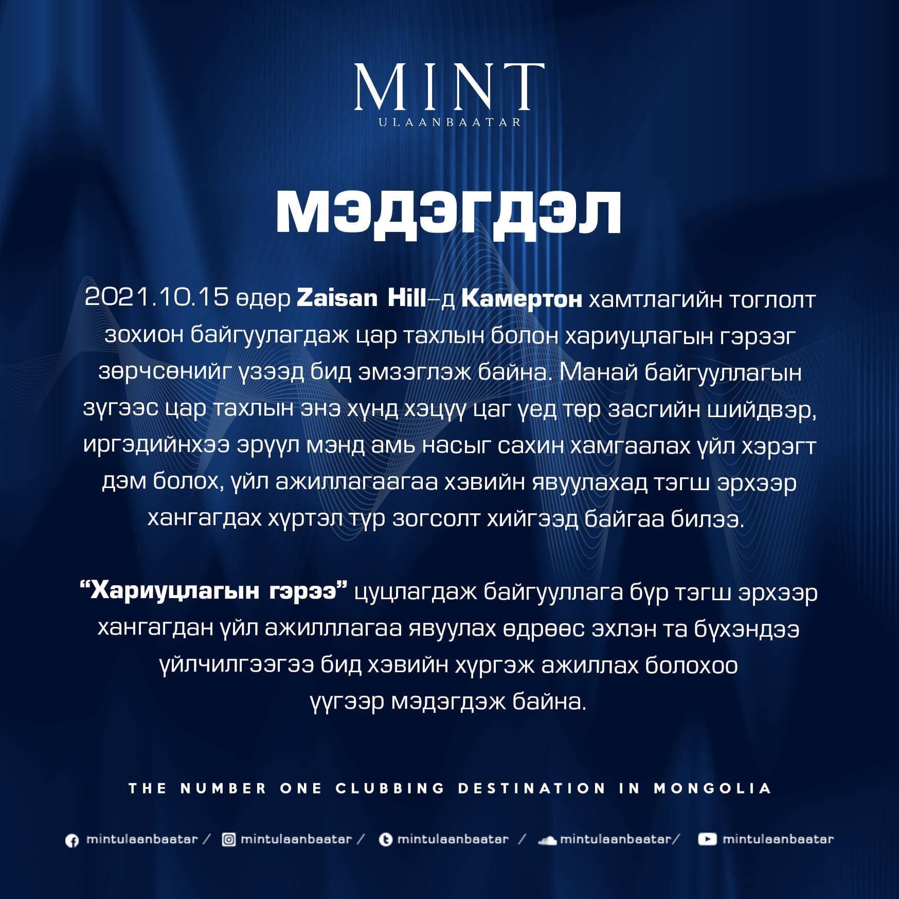 Минт клуб мэдэгдэл гаргажээ. Тус мэдэгдэлд: