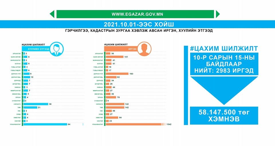 Газрын үйлчилгээ таны “гэрт“ очлоо. 2021 оны 10-р сарын 1-нээс эхлэн иргэн, хуулийн этгээд захирамж нь гарсан газрын гэрчилгээ, кадастрын зургаа өөрөө үнэ төлбөргүй гэртээ хэвлэж авч ашиглаж эхэллээ.