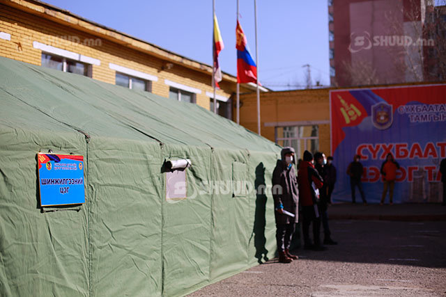 Залуус ирсэн дарааллын дагуу эмчийн үзлэгт орно. Тэд эхлээд коронавирус халдварын түргэвчилсэн шинжилгээ өгөх аж. Шинжилгээний хариу сөрөг гарсан тохиолдолд дотогш нэвтэрнэ. Мөн дулаацуулах байр байна. Хүн хоорондын зай барьж зогсохыг албаныхан үргэлж сануулна. Эмчийн үзлэгт тэнцэж, цэргийн албанд татагдаж буй залуусын нэрсийг урсдаг самбараар мэдээлж байлаа.