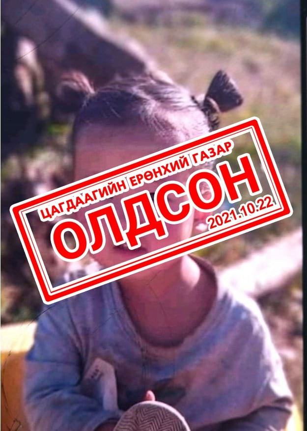 Налайх дүүргийн нутаг дэвсгэрээс өчигдөр буюу 10 дугаар сарын 21-ний өдрийн 13.00 цаг орчимд 3 настай Н гэгч охин сураггүй алга болжээ. Дуудлагын дагуу тус дүүрэг дэх цагдаагийн хэлтсийн алба хаагчид шуурхай эрэн хайх ажиллагааг явуулсны дүнд түүний байгаа газрыг олж тогтоон, хүүхэд хамгааллын хариу үйлчилгээ үзүүлж, хамтарсан багт холбон зуучлах ажлыг зохион байгуулан ажиллаж байгаа аж.
