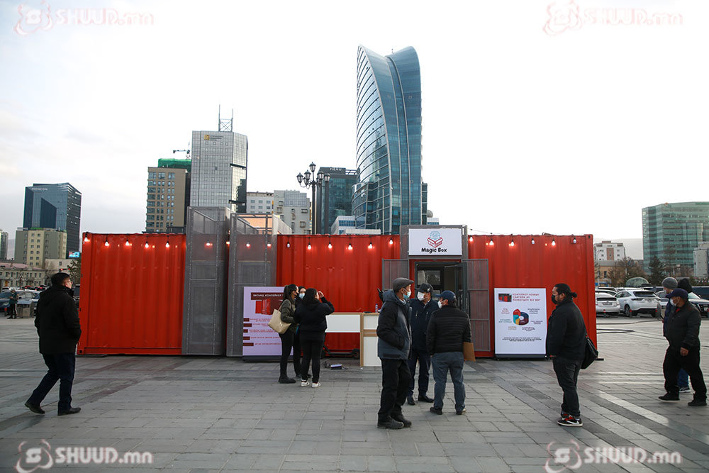 Сүхбаатарын талбайд байрлуулсан улаан өнгийн чингэлгийг та бүхэн анзаарсан байх. Энэ бол энгийн нэг чингэлэг биш “Шидэт хайрцаг”. “Magic box” төслийн Б.Цолмон тэргүүтэй 15 залуу чингэлгийг тохижуулан “Magic box” явуулын номын санг бүтээсэн байна.