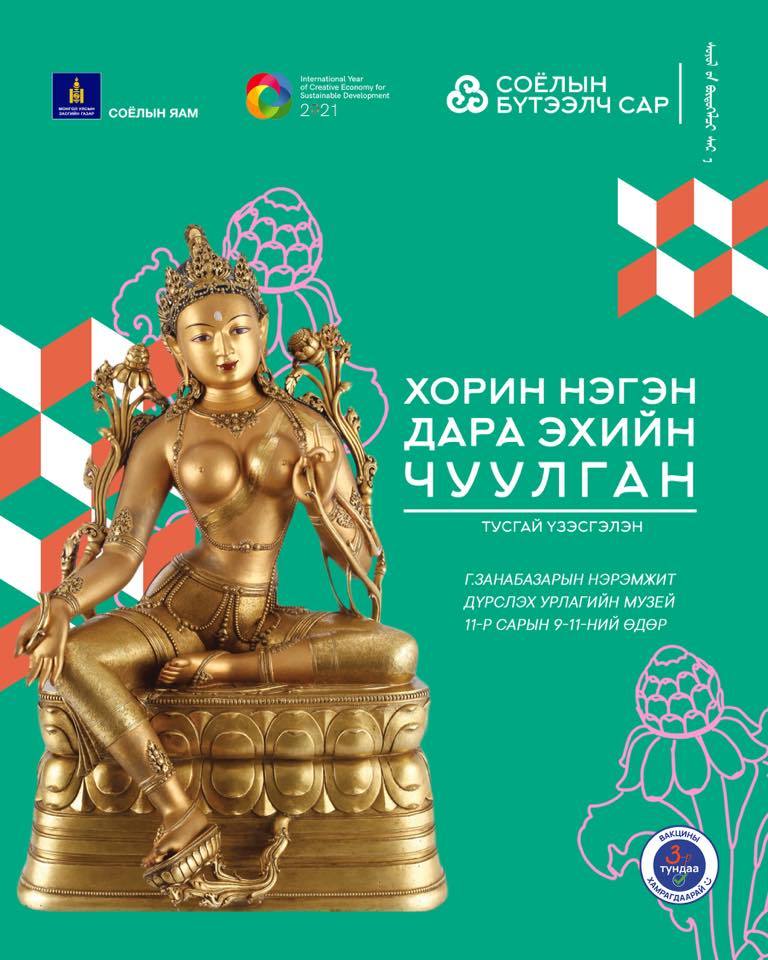 Бадамлянхуа цэцэг дэлбээгээ нээсэн мэт үзэсгэлэнтэй, нигуур царай нь намар цагийн тунгалаг саран мэт дугариг дэлгэр, энэрлийн мишээлтэй, амарлингуй төгс байдалтай, шавь сэлт болон хамаг амьтныг үл орхих, үргэлж тусыг болгоох уужим харцтай, үзэсгэлэн гоо, идэр жавхаалаг төгс бүсгүйн байдлаар бүтээж ирсэн түүх, шинжлэх ухаан, өв уламжлал, гоо зүй, урлаг, уламжлалт мэдлэгийг агуулсан дахин давтагдашгүй сод бүтээлүүдийг дэлгэсэн "Хорин нэгэн дара эхийн чуулган" үзэсгэлэн энэ сарын 11 хүртэл олны хүртээл болно.