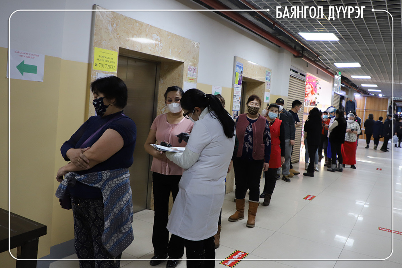 Үүний дагуу Баянгол дүүрэгт өнөөдөр таван байршилд дархлаажуулалтын цэгийг нээж, үйл ажиллагааг нь эхлүүллээ. Тодруулбал, “Гранд плаза”, “Орхон” худалдааны төв, “Хархорин” худалдааны төв, “Сандэй” худалдааны төв болон “Барс” зах гээд хүн амын хөдөлгөөн ихтэй таван байршилд дархлаажуулалтын цэг нээж, дүүргийн Засаг даргын орлогч, дүүргийн Шуурхай штабын дарга Д.Мөнхбаатар, дүүргийн Хүнс, худалдаа, үйлчилгээний хэлтсийн дарга Б.Бат-Өлзий болон дүүргийн Мэргэжлийн хяналт, цагдаа, онцгой байдлын хэлтсийн алба хаагчид өнөөдөр /2021.11.17/ газар дээр нь очиж ажиллалаа.