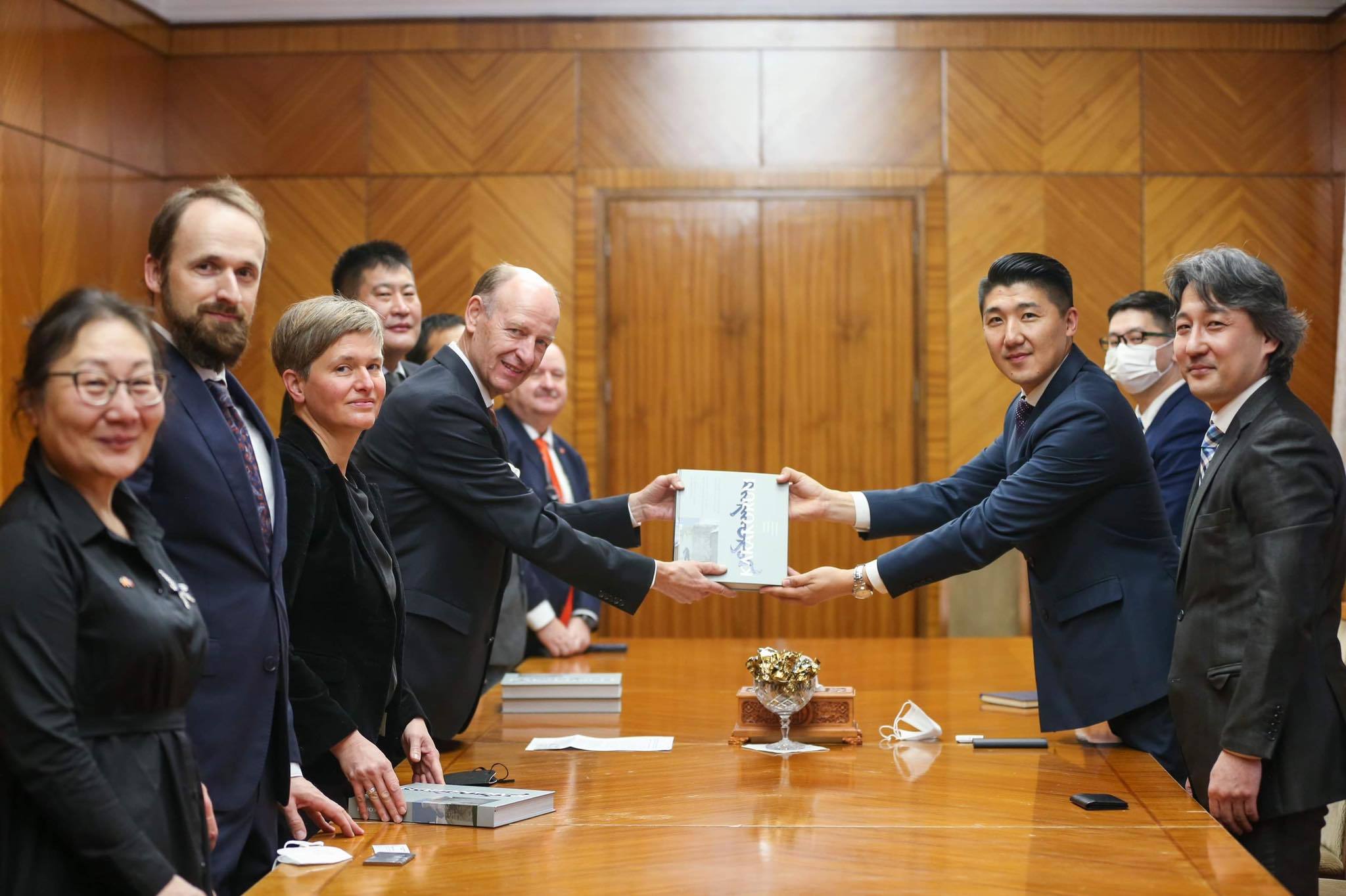 Уулзалтын үеэр хоёр улсын Ерөнхийлөгчийн ивээл дор хэрэгжсэн “Монгол-Германы Хархорум экспедиц”-ийн 20 жилийн судалгааны үр дүн болох гурван хэлээр бичигдсэн “Хархорум” номыг хүлээлгэн өгөв.