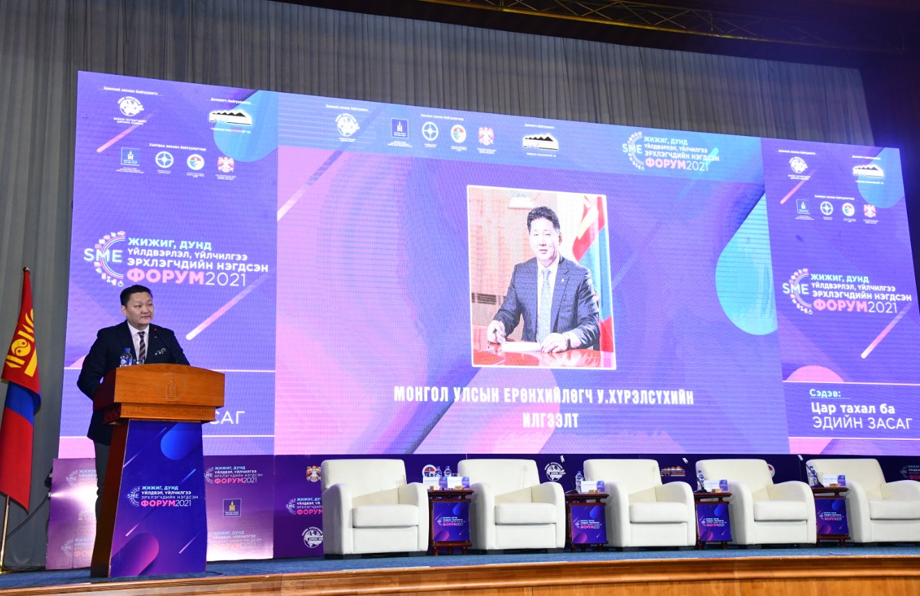 Өнөөдрийн Жижиг дунд үйлдвэрлэл, үйлчилгээ эрхлэгчдийн форум дэлхий дахинаа цар тахал үргэлжилсэн амаргүй цаг үед болж байна. Энэхүү хүнд цаг үед бүхий л боломжоо дайчлан бизнесийн үйл ажиллагаагаа эрхэлж, ажлын байраа хадгалж буй баялаг бүтээгчид, түүн дотроо жижиг дунд үйлдвэрлэгчид Та бүхэнд Монголын нийт ард түмнийхээ нэрийн өмнөөс Төрийн тэргүүний хувьд талархал илэрхийлье.